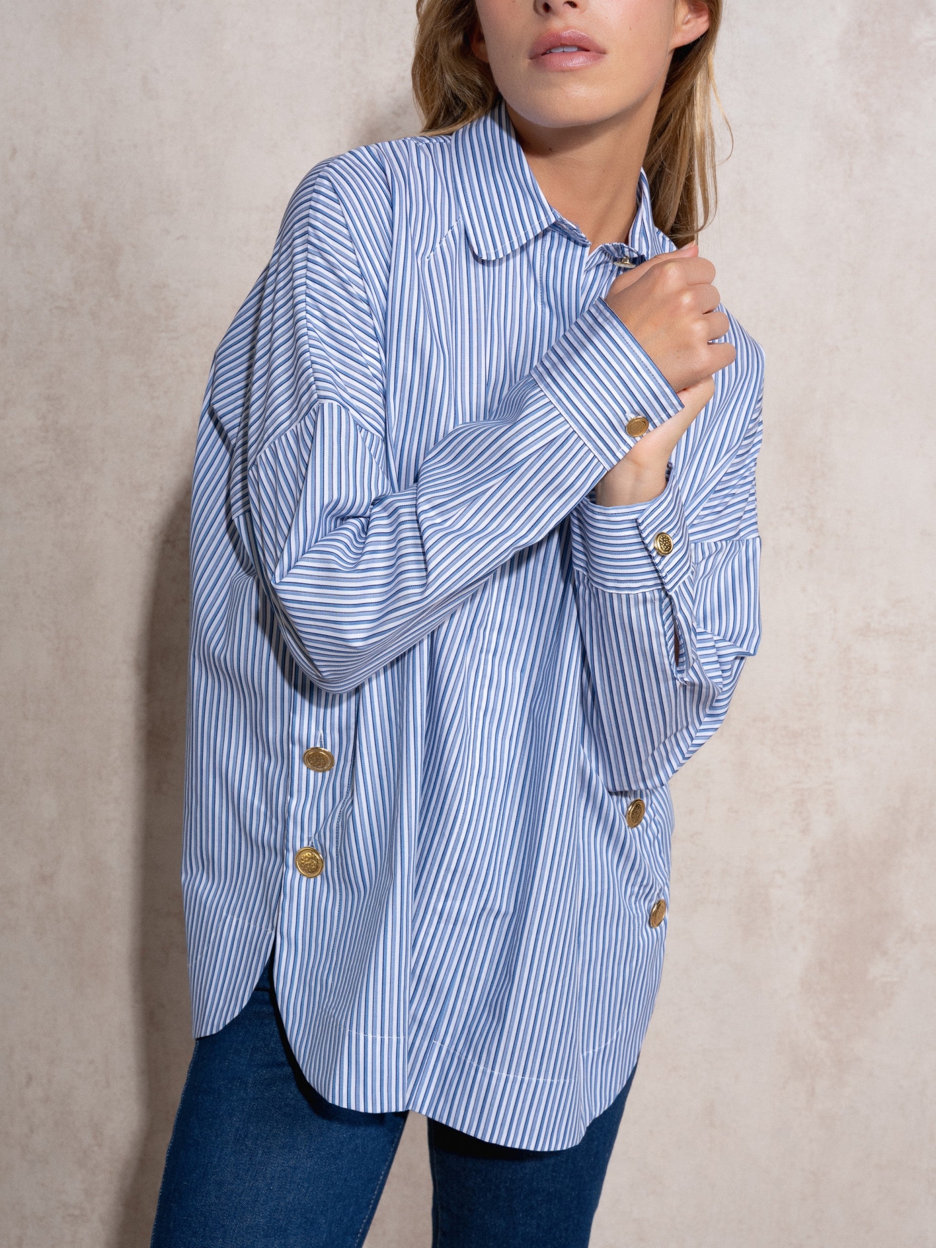 Confeccionada en un tejido ligero y agradable al tacto, incluye cuello camisero clásico, cierre de botones en la parte delantera y mangas largas con puños abotonados. Ideal para combinar con faldas, vaqueros o pantalones rectos en outfits relajados o effortless.