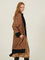 Este kaftán bimateria largo con forro de lunares destaca por su diseño exclusivo que combina texturas, estampados y contrastes en perfecta armonía. La parte exterior presenta un motivo geométrico discreto en tonos tierra, mientras que el interior revela un forro con delicado estampado de lunares, aportando un toque sofisticado y original.