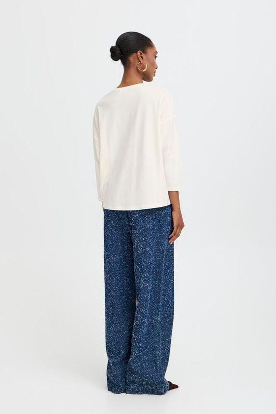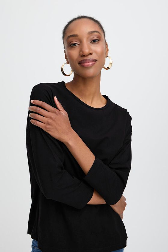 Camiseta de manga larga confeccionada en un tejido suave y agradable al tacto, ideal para el día a día. Su diseño liso y minimalista, tipo sudadera con corte caído y estilo oversize, ofrece máxima comodidad y un aire moderno y desenfadado.