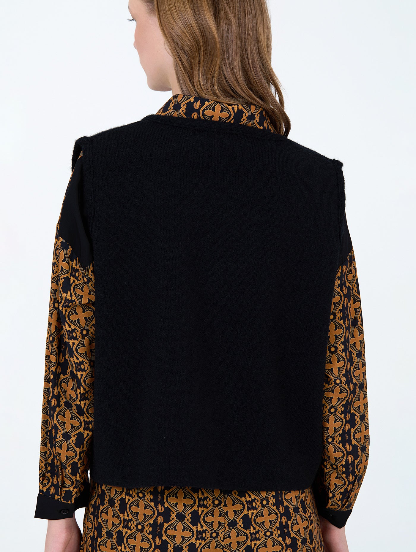 Ideal para combinar sobre camisas, blusas o vestidos, este chaleco es una pieza versátil que puedes llevar en ocasiones casuales o para dar un toque diferente a tus looks de oficina.
