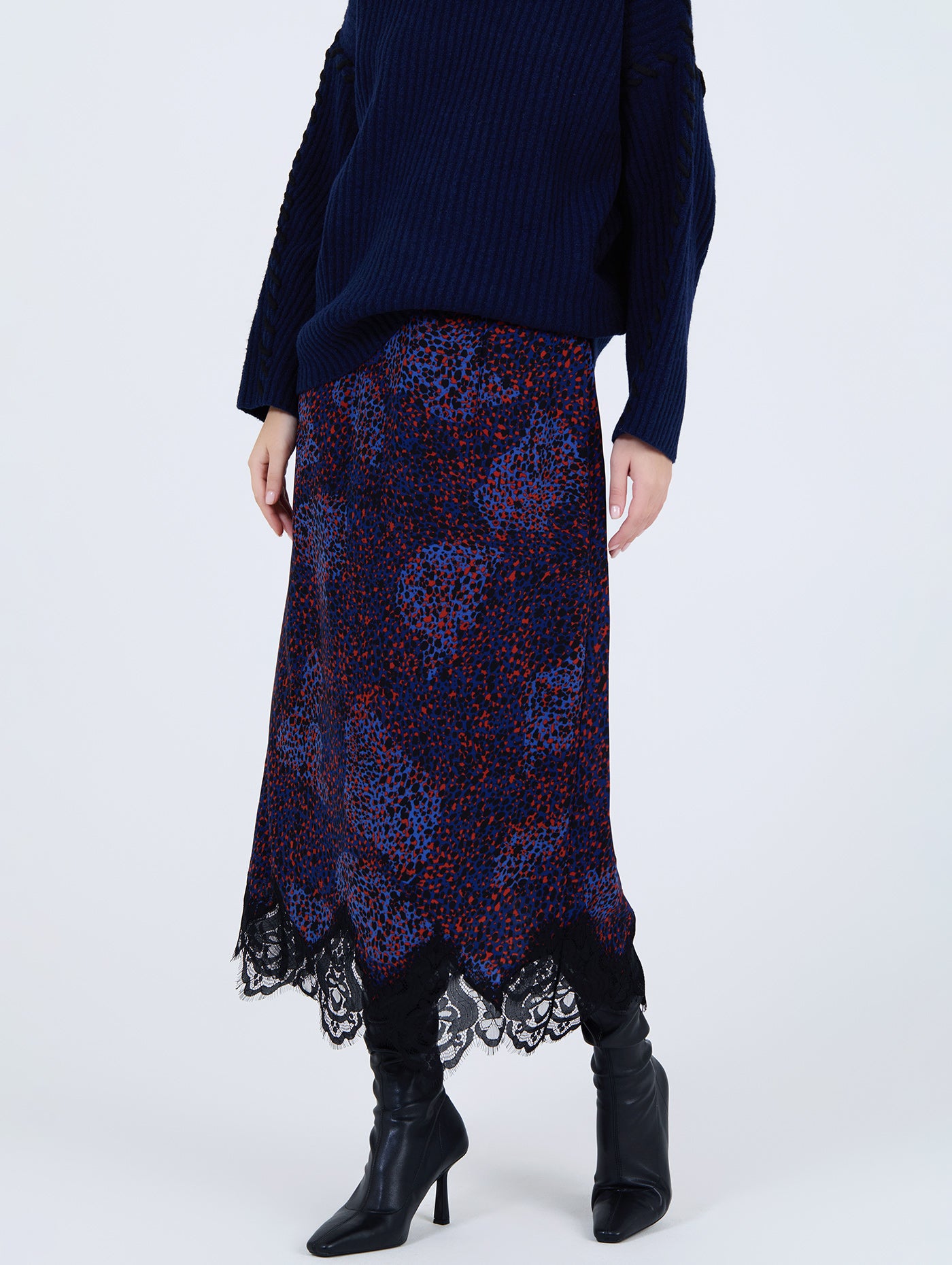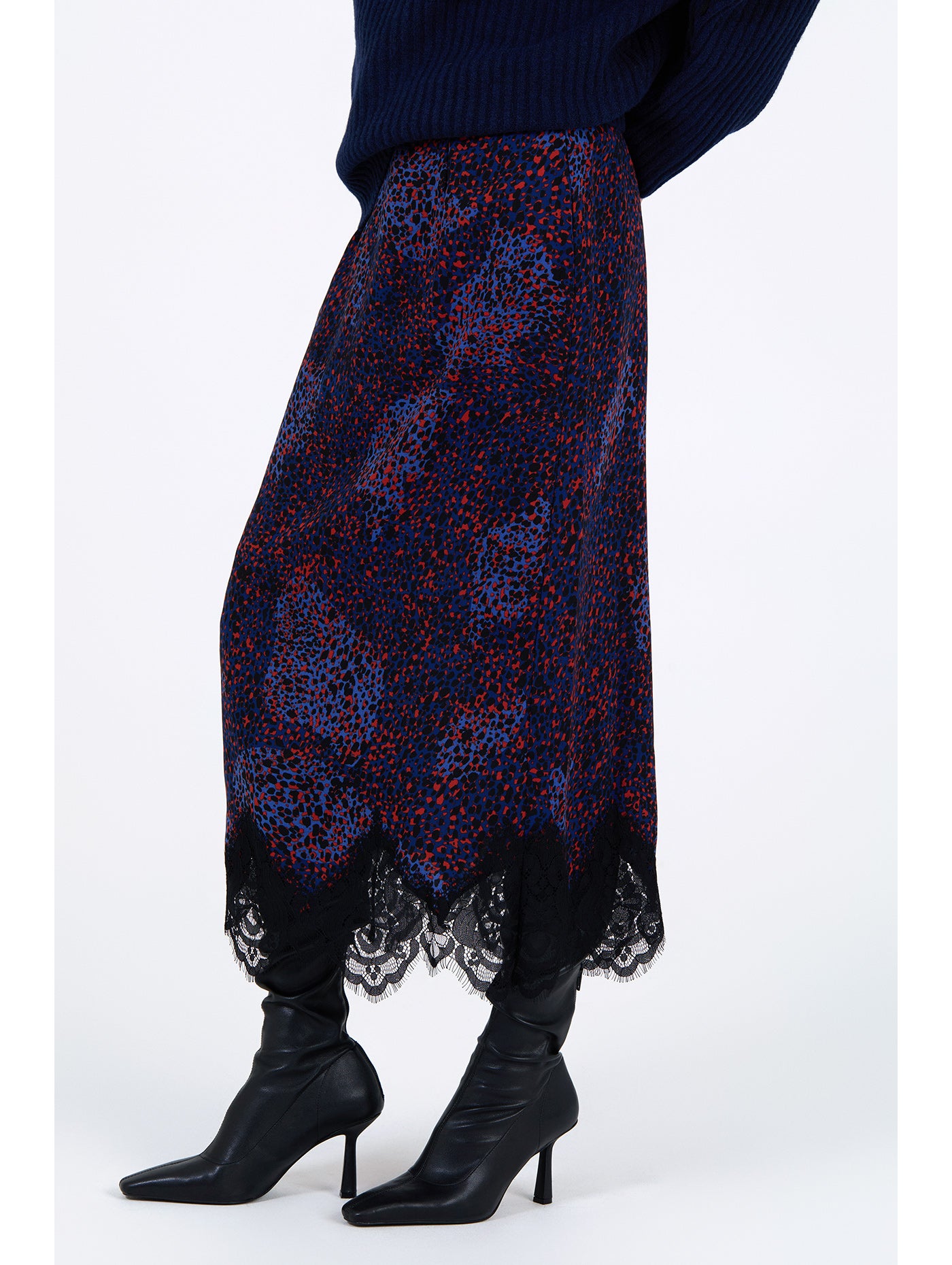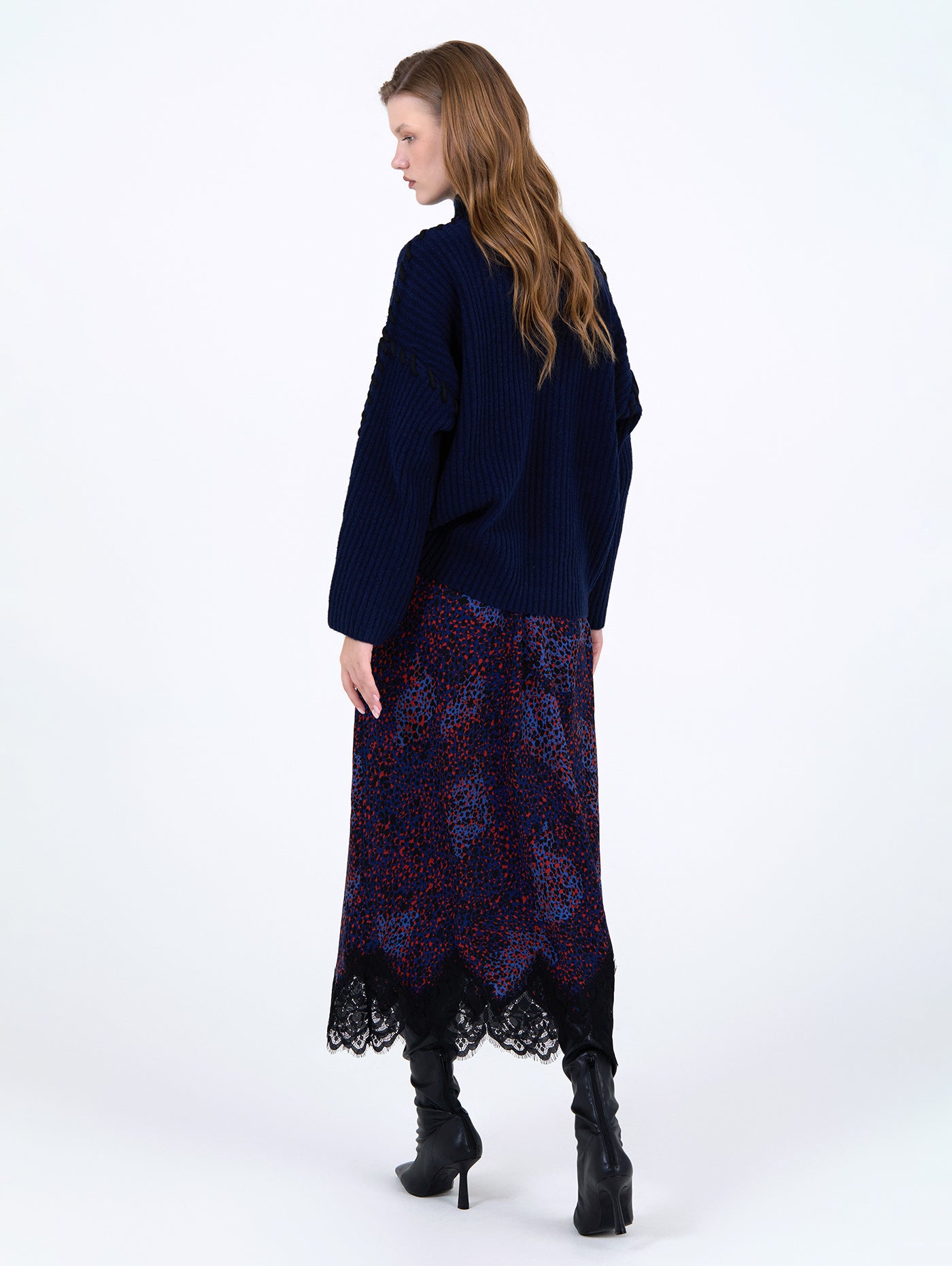 El bajo está rematado con un delicado detalle de encaje que añade un toque femenino y sofisticado al conjunto. Versátil y actual, esta falda es perfecta para combinar con blusas, camisetas o chaquetas, creando looks tanto casuales como más formales con un aire distintivo.