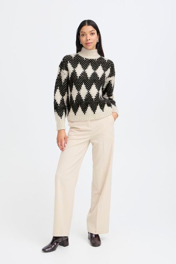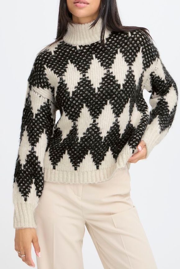 Jersey de punto negro y beige con diseño de rombos para mujer