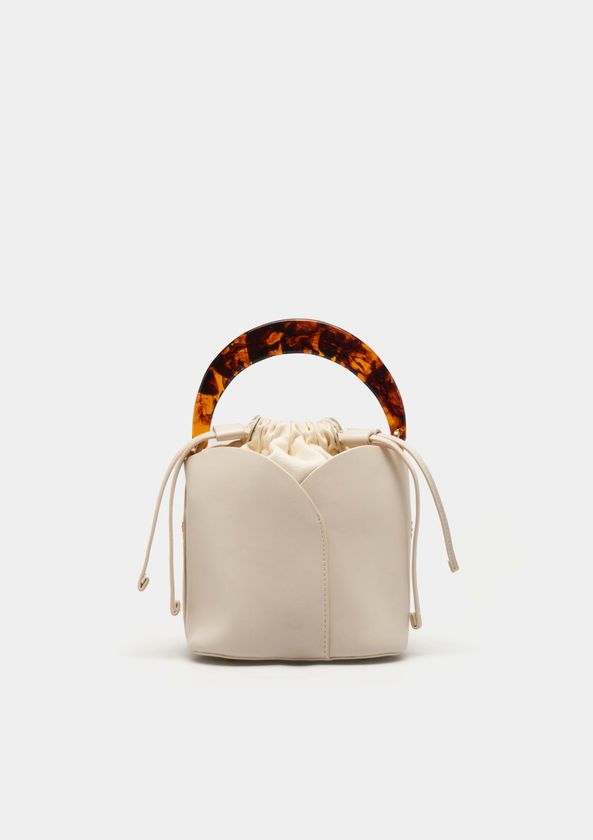 Este mini bolso tipo cubo de mujer destaca por su original forma de flor y su asa de resina en contraste de color, que aporta un toque distintivo y sofisticado. Incluye una asa bandolera ajustable y extraíble para mayor versatilidad. La parte superior de lona con cierre de cremallera garantiza practicidad y estilo. Un accesorio elegante y único, ideal para looks de día o de noche.