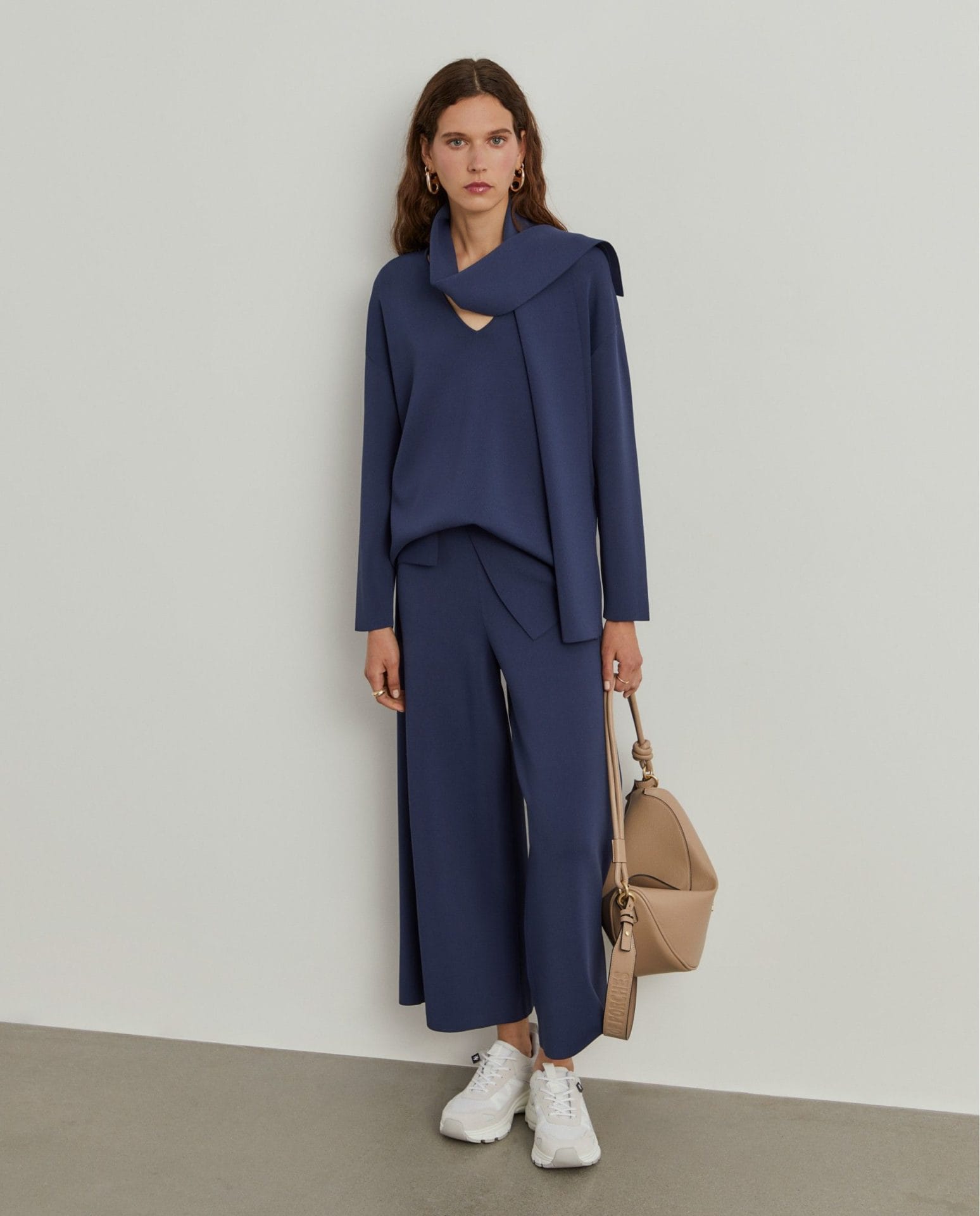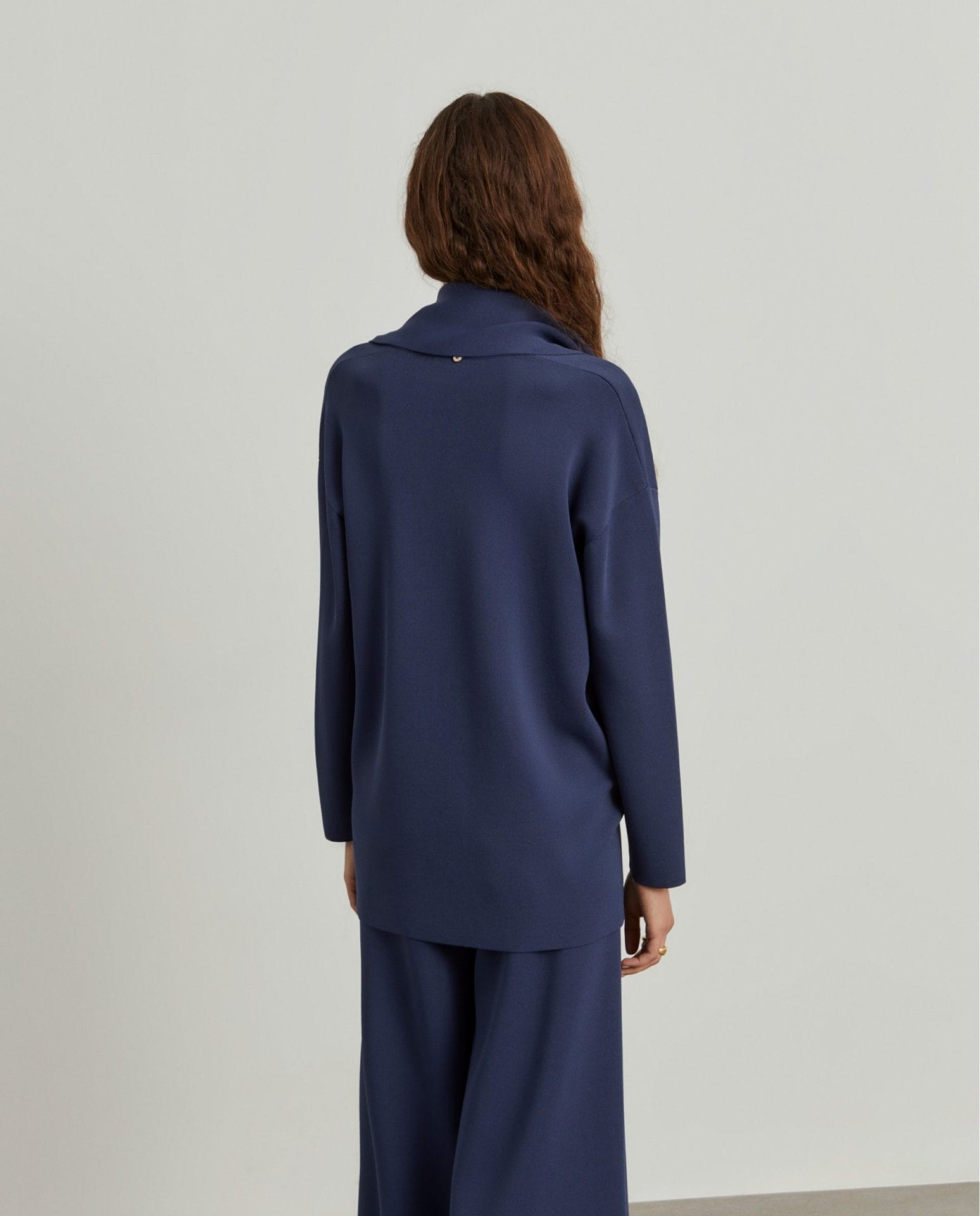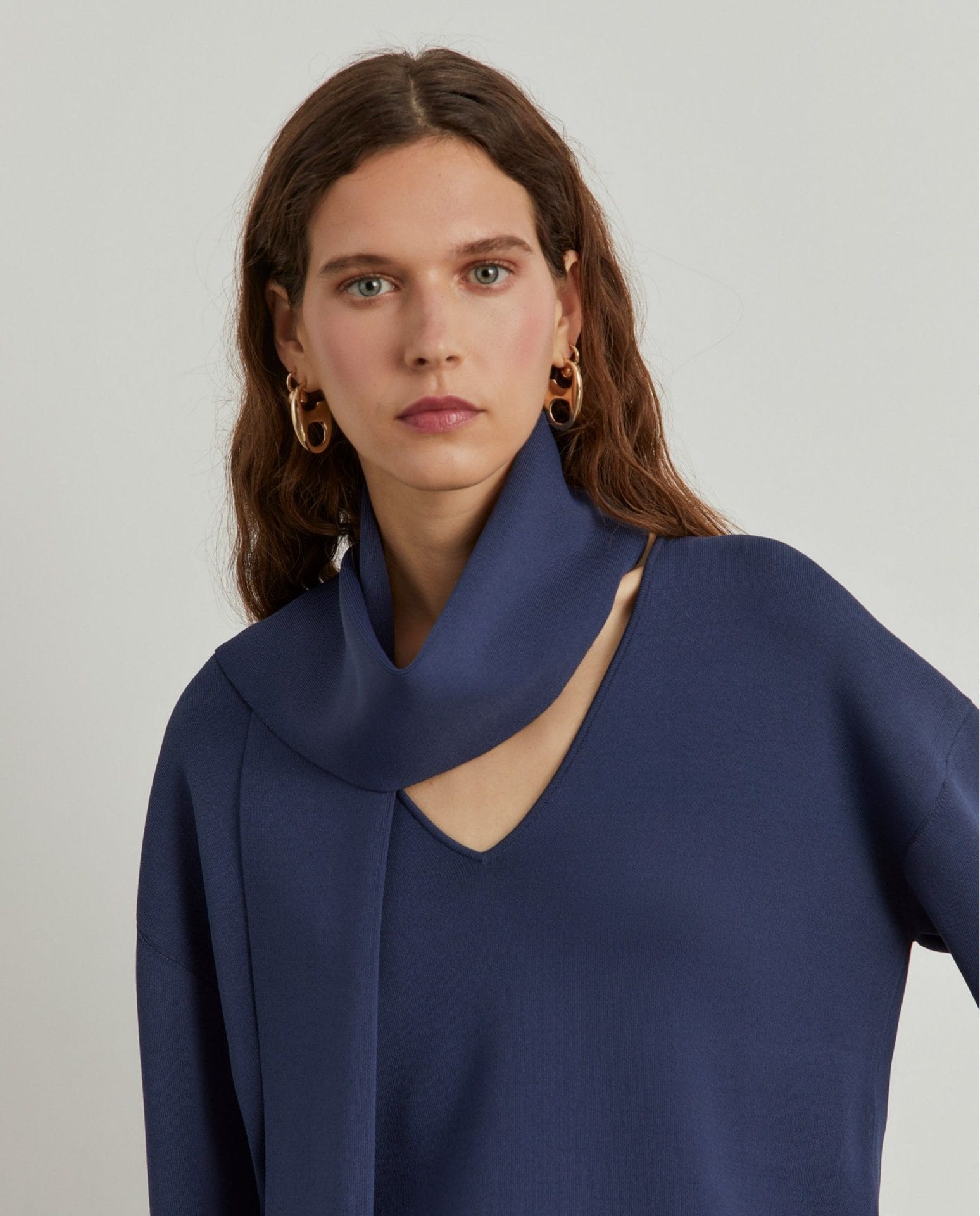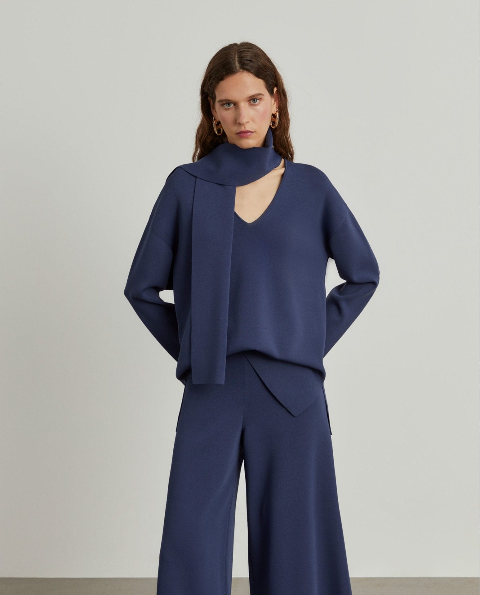 Su detalle diferenciador es un pañuelo extraíble, confeccionado en el mismo tono y tejido que el jersey.