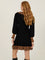 Vestido Corto Punto Negro combina un diseño elegante con un aire bohemio y actual. Su color negro sirve de base para resaltar los detalles en tonos camel y tostado que se encuentran en el escote bordado con borlas decorativas y en el bajo con franjas horizontales.