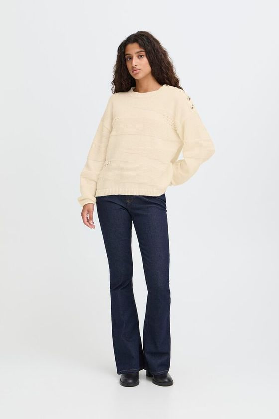 Jersey de punto en color crudo con un diseño elegante y versátil. Confeccionado en un tejido suave y confortable, es ideal para los días frescos. Presenta un corte clásico con cuello redondo y mangas largas, perfecto para un look atemporal.